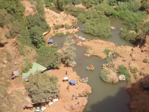Las Cascadas de Ouzoud se encuentran en el Medio Atlas. Es el sitio más más visitado de la región. En los alrededores, valles verdes, molinos, huertos y un circuito magnífico de las gargantas de los Esclavos Riverare . Ouzoud es la palabra bereber que significa "oliva", refiriéndose a los olivos cercanos